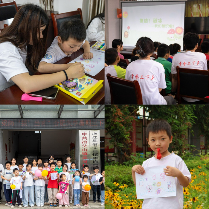 实践团队开设“你眼中的家乡”绘画课,引导孩子们描绘家乡的秀丽山水与独特的风土人情,在艺术创作中深化对乡土文化的认知与情感认同。团队成员巧妙融合传统元素与现代韵律,带领孩子们在舞蹈中体验艺术的魅力。