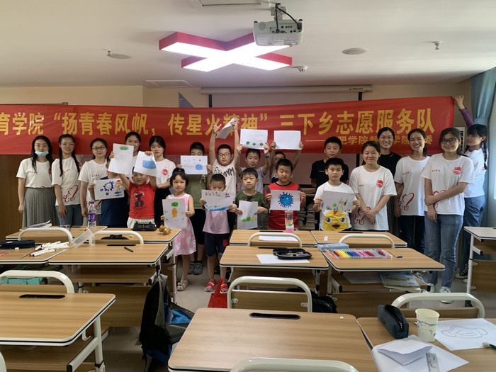 炎炎夏日,教育学院“三下乡”社会实践志愿服务队本着回报社会、服务社会的宗旨,以促进儿童全面发展为目标,在合肥滨湖和园社区开展义务支教专业实践活动。志愿者们立足自身专业学习实践,结合社区需求,为社区儿童开展了书法、朗读、美术和手工等第二课堂义务支教,大大激发了孩子们的学习动力,开阔了孩子们的视野,给他们带来了一个丰富多彩的暑期生活。此外,志愿者还结合当地实际情况开展了暑期安全教育课程,包括防疫防汛小知识、暑期防溺水、安全用电等主题教育,强化儿童暑期安全意识。志愿者们在实践中真正体会到作为一名教师的责任和担当,深入了解了孩子们的身心发展特点,为今后的职业规划和发展奠定了基础。同学们表示要更加认真努力地教书育人,用爱心陪伴孩子们成长,在他们的心中播种下梦想的种子。