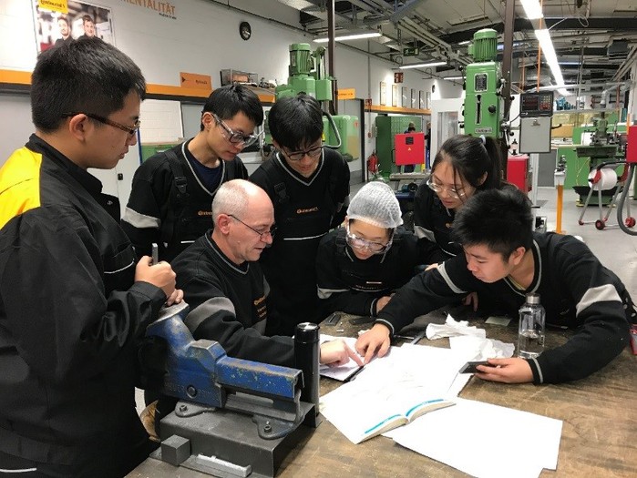 双元制大陆班是我校2016年9月与德国埃姆登-里尔应用科学大学、德国大陆集团轮胎事业部三方共同组建的特色专业,旨在探索双元制高等教育在中国的本土化改革和发展。在学生招生、课堂教学、实践教学、国际化能力培养等方面,双元制大陆班走出了一条特色之路,也是真正意义上中国第一个双元制高等教育专业。