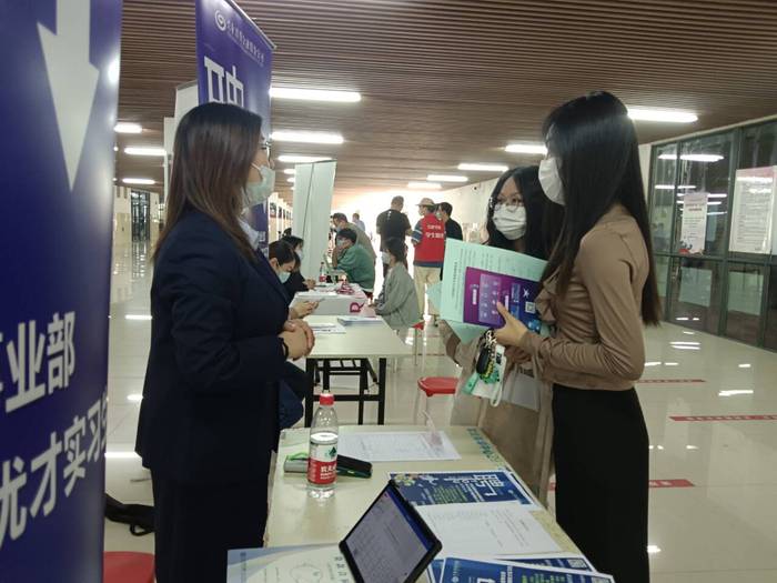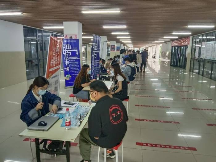 活动现场,企业代表为毕业生们详细介绍了企业文化、招聘要求并耐心解答了学生们的疑难困惑,双方就就业细节等交换了意见。毕业班辅导员老师们也积极为学生们推荐工作。招聘会期间,校就业指导中心学生助理积极引导、热心服务,现场井然有序,实现了疫情防控和促进就业两不误的目标。