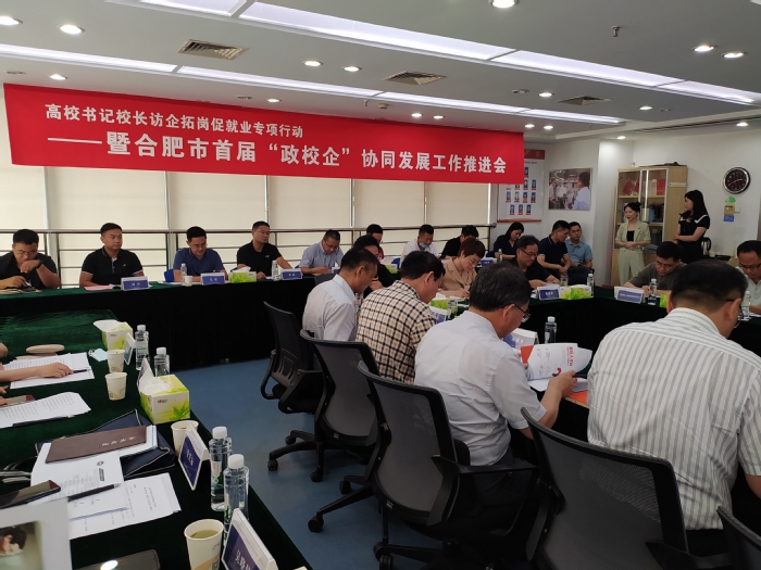 7月18日下午,由安徽省大中专毕业生就业指导中心、合肥市人力资源和社会保障局主办,合肥市高校创业就业联合会、新安人才网承办的高校书记校长访企拓岗促就业专项行动暨合肥市首届“政校企”协同发展工作推进会在新安人才网举行。推进会旨在全面深化校企合作、拓宽毕业生就业渠道、优化就业工作机制、促进供需精准对接,合肥10家用人单位负责人和合肥11所高校代表参加了会议。我校先进制造工程学院党委书记杜娟、学工办副主任梅志强参加会议。