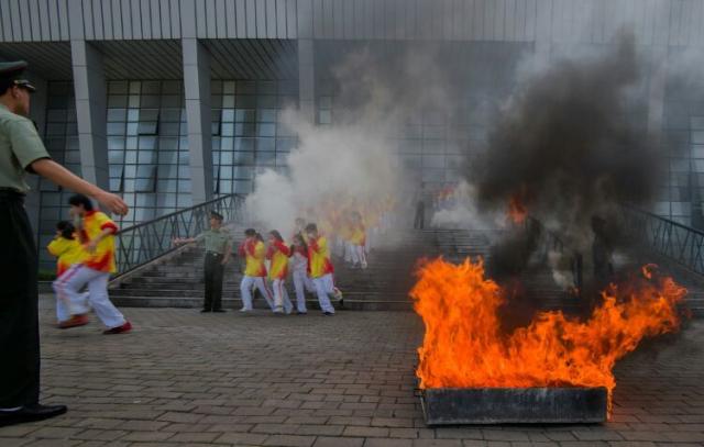 上午九点,伴随一声“哨响”防震避险消防逃生演练正式拉开序幕。参演学生迅速“紧急避险”,大家迅速抱头、重心下移蜷缩躲在角落里。当再次接到疏散指令后,学生们在安全引导员的指挥下迅速向安全区域有序撤离疏散。随后,“火警”响起,烟雾四起。体育馆内的学生以最快的速度到达所在的岗位进行人员疏导。消防疏散的警报后,学生们采取低头、毛巾捂鼻等方式快步穿越烟雾区,离开体育馆。整个活动撤离有序,行动迅速。活动最后,在场官兵为在场学生演示了灭火器的使用方法,并讲解注意事项。武装部部长肖宝生对学生们的应急处理进行表扬,并宣布本次防震避险消防逃生演练至此顺利结束。