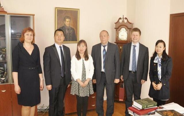 同时,代表团表示也希望利用此次国际合唱艺术节的契机,促进今后两校进一步加强双方的艺术文化交流和教学、科研、管理及留学生教育等多层次、多领域的深入交流合作。下诺夫哥罗德国立大学校长表示,他非常乐意和我校建立长期的、各方面的交流合作,并对双方具体项目合作达成充满了期待。会谈中,双方互赠了礼物,校长Evgeny Chuprunov赠送我校下诺夫哥罗德国立大学建校100周年纪念册并合影留念。