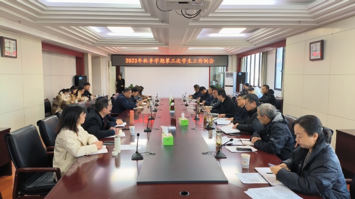 为统筹做好期末学生工作,有效保障秋冬季学生安全,12月1日上午,学校在行政楼九楼东会议室召开了2023年秋季学期第三次学生工作例会。党委副书记刘建中出席,相关职能部门负责人、各二级学院党委副书记、学工办负责人参会,会议由学生处处长丁增云主持。