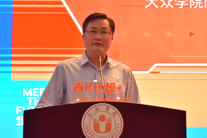 合肥学院大众学院院长王晓峰发表致辞,他希望本次活动企划能够产出优质的未来出行方案,学校将通过产教深度融合,培养出助力城市交通发展的高素质人才,提高青年学生综合竞争力。